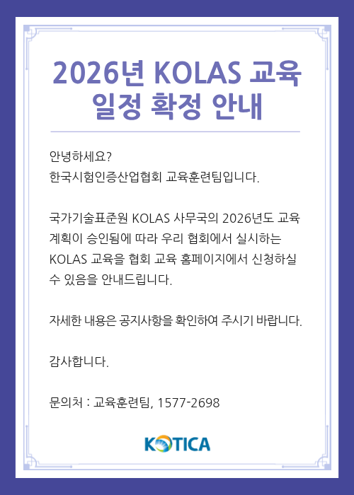 2025년 4분기 KOLAS 교육 및 역량강화교육 안내