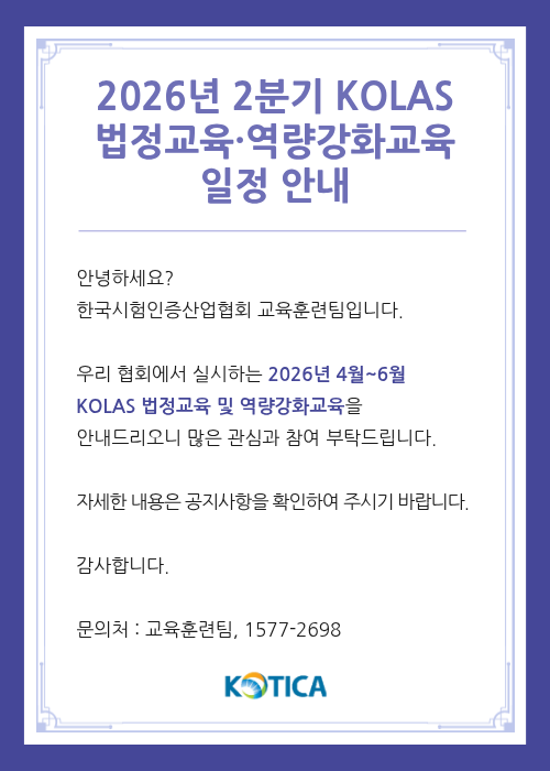 2026년 2분기 KOLAS 교육 및 역량강화교육 안내